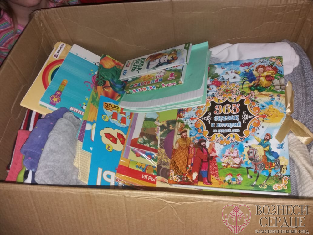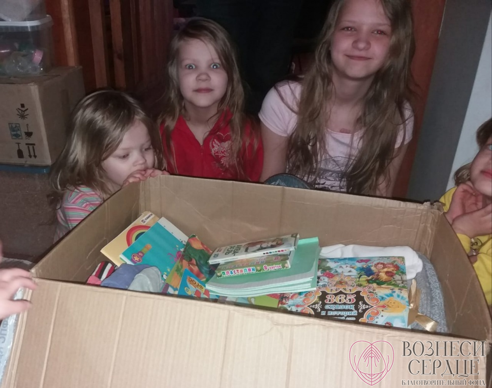 Вот что пишет семья: «Нам пришла огромная посылка из Краснодара от Нефёдовой Юлии, которую она собирала всей семьёй. Очень благодарны за подарки. Основные вещи подошли на младших девочек. Всё очень красивое и нужное. Всегда рады канцелярским товарам, которые у нас очень быстро расходуются, так как все дети любят заниматься творчеством. Особенно порадовали книгами».