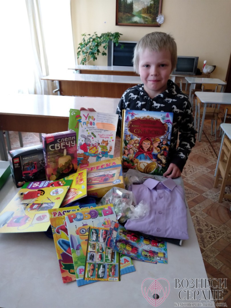 - Подопечный социально - реабилитационного центра Серёжа Егоров получил большую посылку от Миловой Анастасии из Москвы. Здесь столько радости для ребёнка: наборы для творчества, книги, раскраски, набор лего, рубашка. Спасибо большое от ребёнка и всего коллектива центра.
