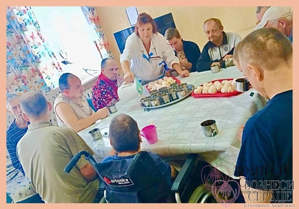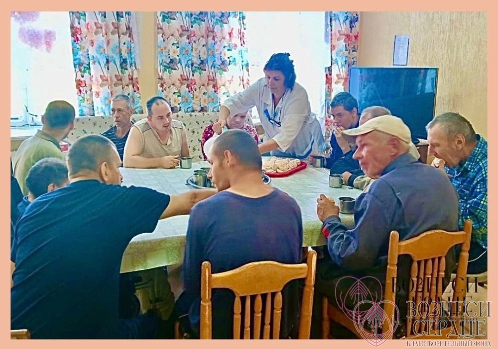 На неделе сладкий стол от нас с вами был в Пореченском ПНИ, куда на днях мы отвезли Валентина Воробьёва.