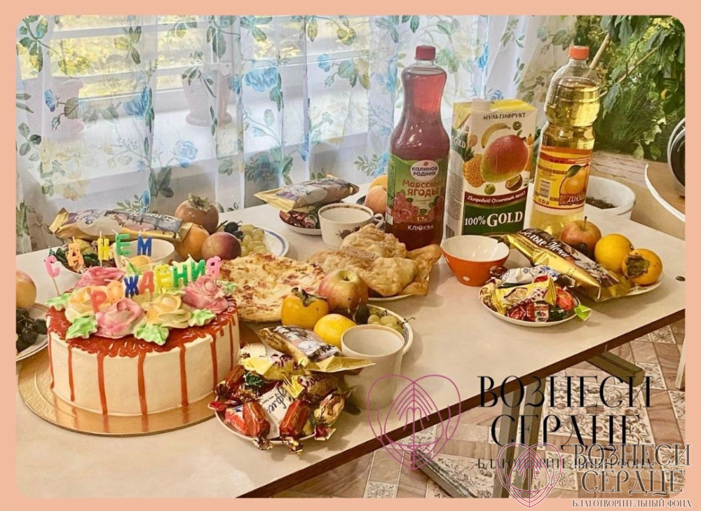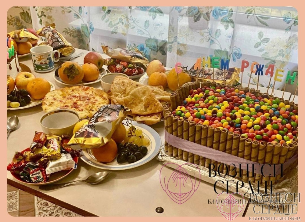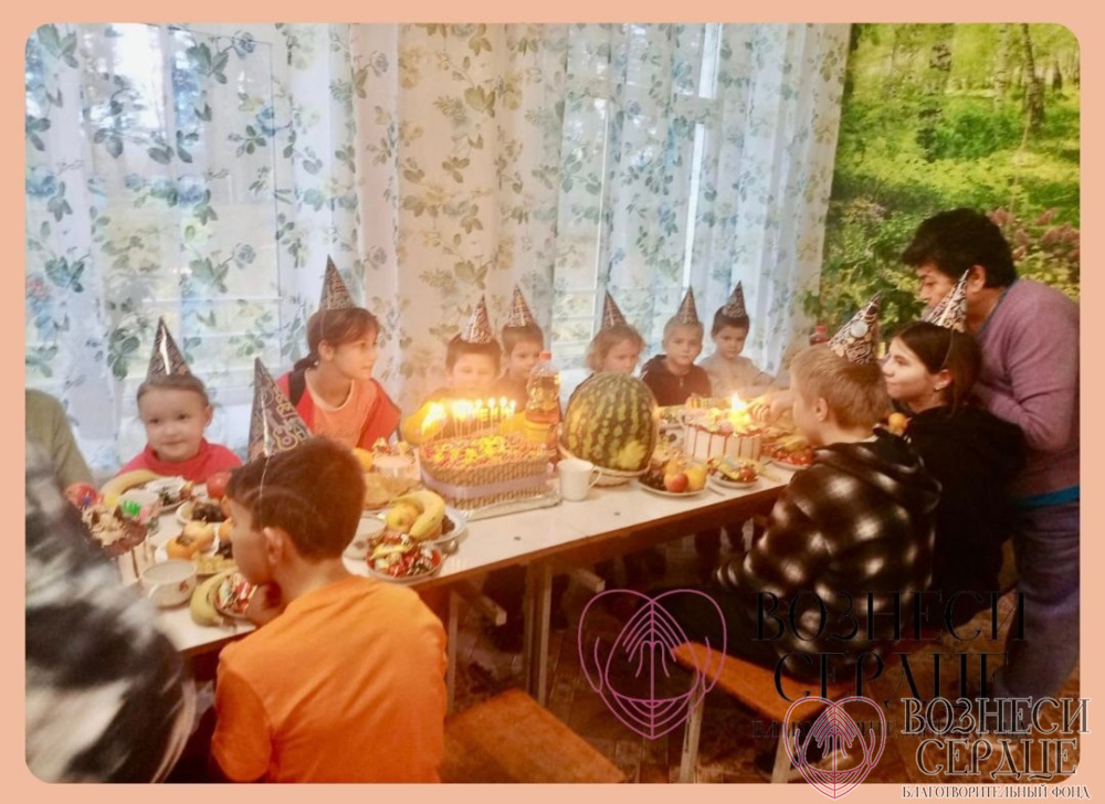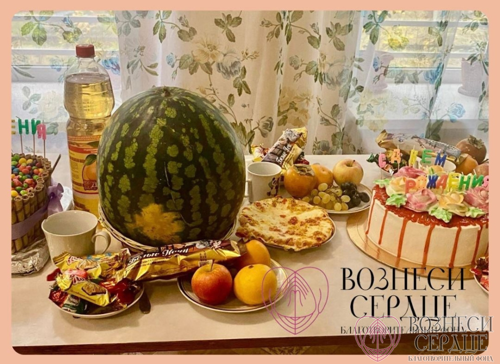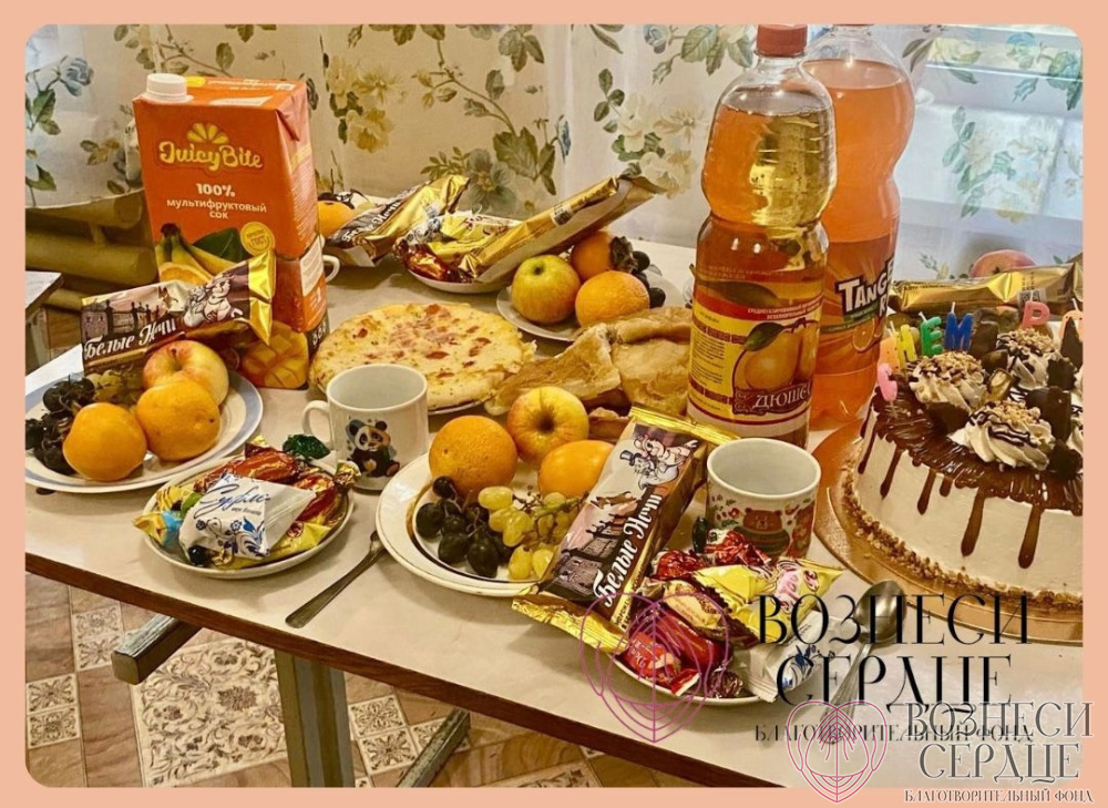 Материальную помощь в организации праздника оказали наши добрые благотворители Александр и Елена. На средства были куплены фрукты, сладости, лимонад, пицца, торт, конфеты.
