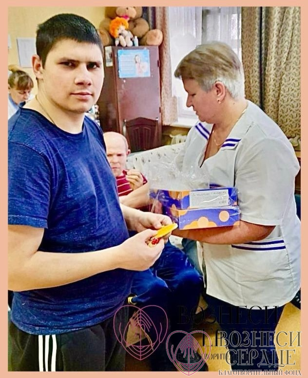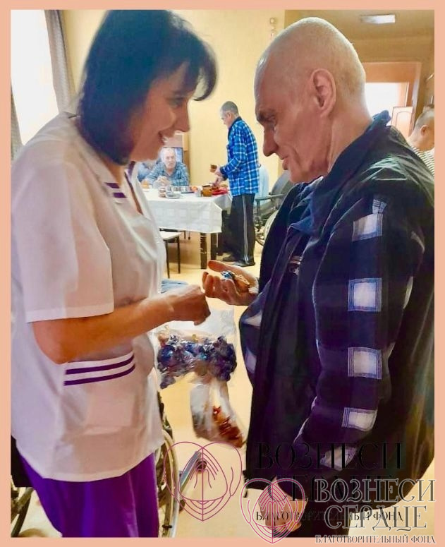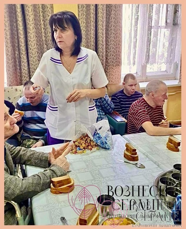 Добрая Татьяна, сотрудник интерната, раздала всем поровну и прислала для нас фотоотчёт. Спасибо ей за отзывчивость и труд на благо проживающих дома-интерната.