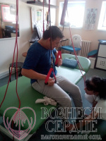 «Здравствуйте. Какое же всем огромное спасибо, что мы попали сюда на реабилитацию. Здесь не только реабилитация, но и лечение спины и суставов. Казалось бы, мы всего здесь несколько дней, а столько уже освоили. Здесь есть робот - локомат, который помогает восстановить левую руку Артема. Она у него почти ничего не умеет делать, а тут обучают эту руку работать, как и правую. Балансир учит управлять своим телом правильно. Йодобромная ванна помогает расслабиться и снять тонус и усталость. Для лечения здесь есть всё: массаж стоп, массаж спины, мотомед, ЛФК, полтора часа и беговая дорожка «бегущий паук».