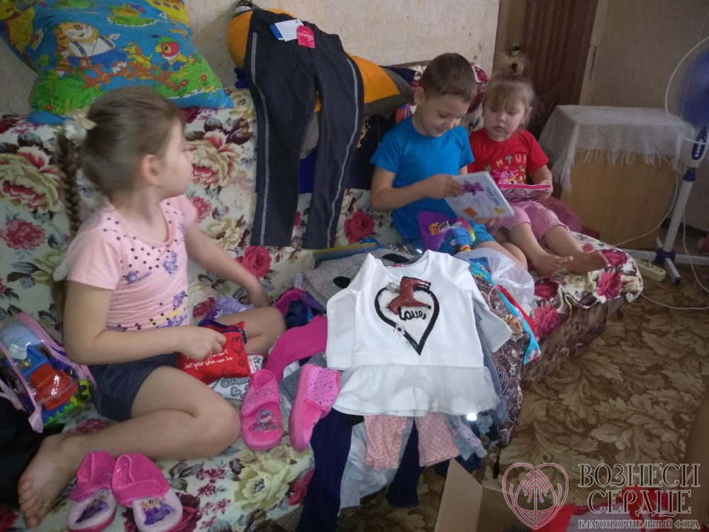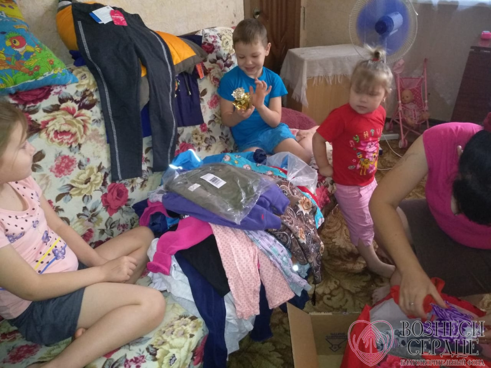 Детишки из семей получили необходимую одежду и обувь, которая всем пришлась по размеру. Семьи благодарят свою добрую дарительницу и желают ей всех благ.