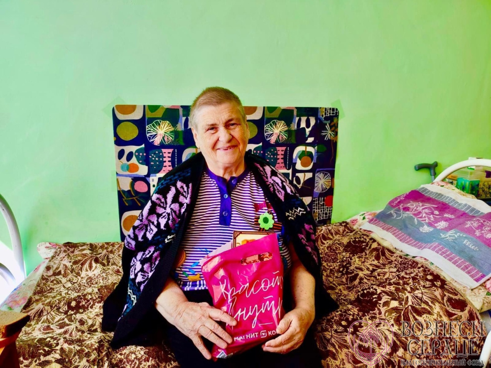 Благодарим нашего незаменимого добровольца Дарью Веселову и её семью за помощь в организации праздника для пожилых людей. Они являются важным звеном в нашей цепочке добра. Дарья и её семья получают подарки от вас в интернет-магазине, заказывают угощения, приходят в праздник в отделение с поздравлением. В мае подарков было так много, что наши добровольцы поздравляли бабушек и дедушек не только в День Победы, но и на прошлой неделе принесли ещё большую часть угощений от вас.