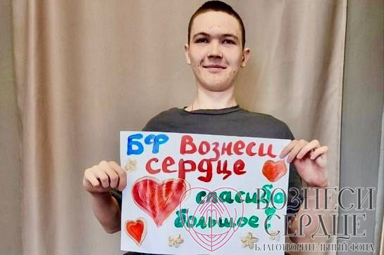 Эти новости очень порадовали молодого человека, и в ответном письме он прислал трогательный плакат-благодарность для Фонда и каждого Благодетеля, который откликнулся и помог.