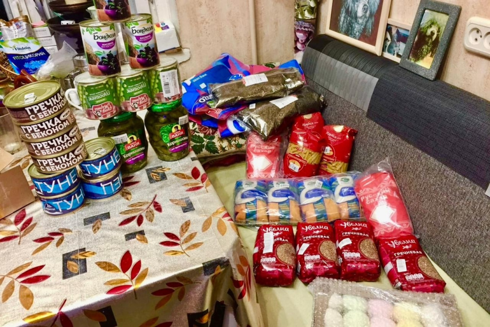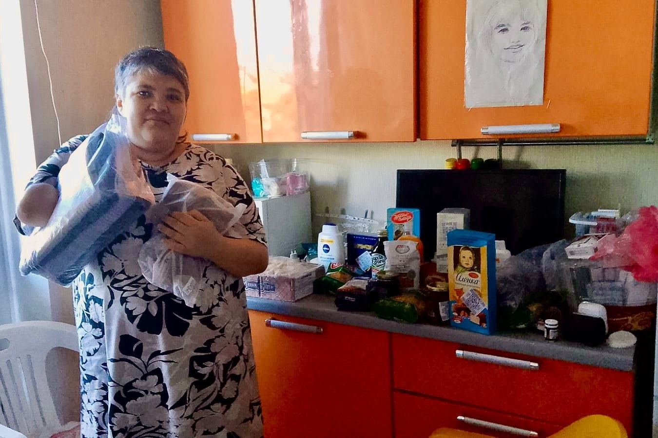 Добрая Ольга заказала разнообразные продукты. Здесь крупы, консервы, масло, сладости. Всё это поддержит семью. Доход семьи 2 пенсии, поэтому приходится экономить каждый рубль, чтобы хватило до очередной выплаты.