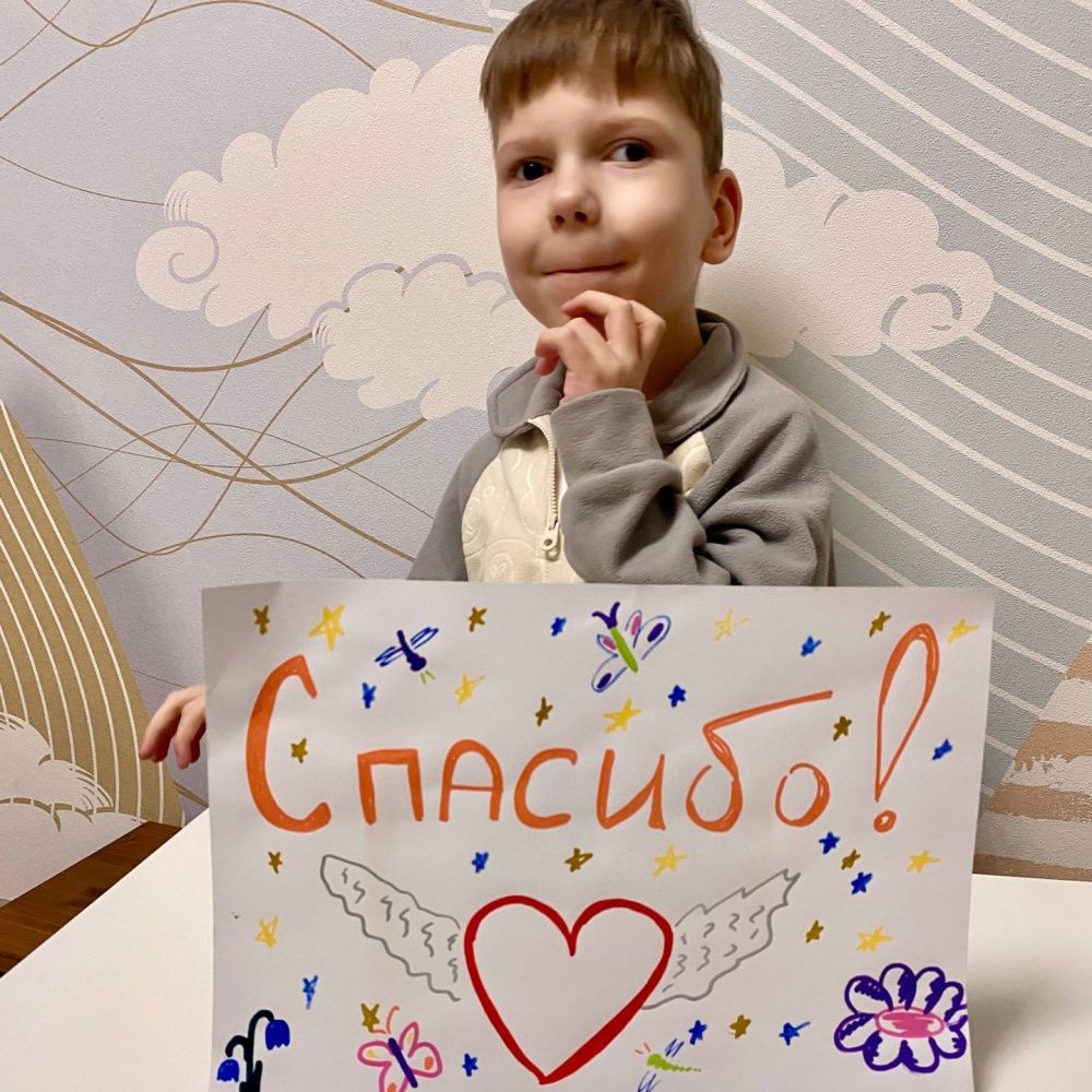 Получив такие радостные вести, Никита вместе с мамой нарисовал и прислал нам чудесный плакат-благодарность.