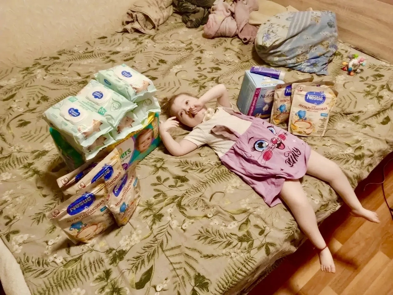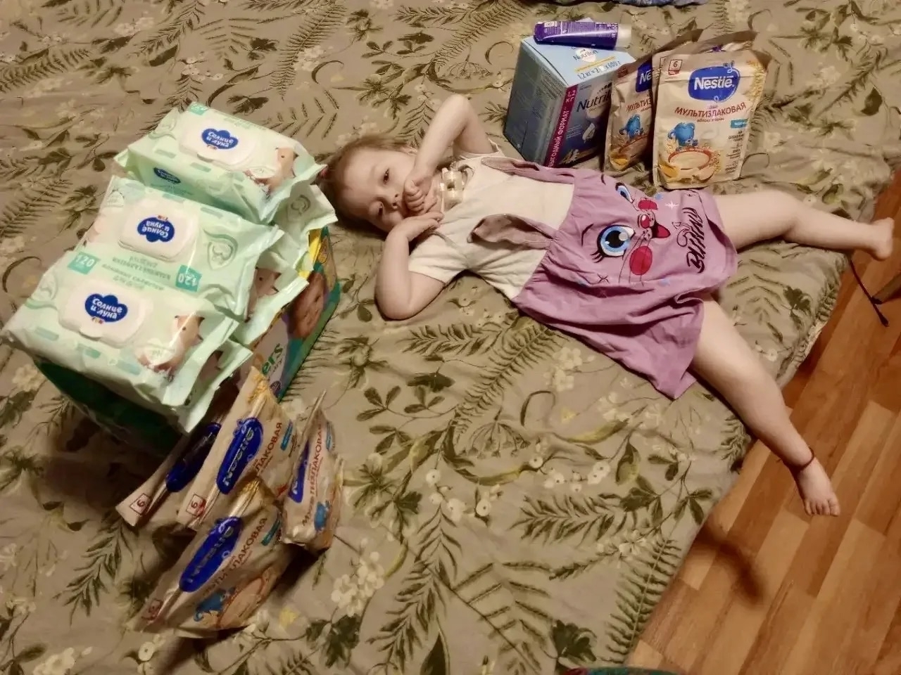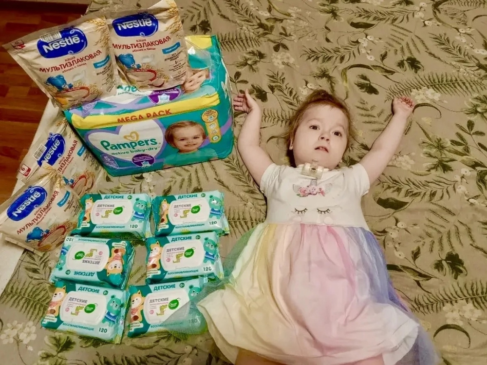 Благодаря Юлии семья получила самое необходимое: запас детского питания, подгузники и влажные салфетки. Мы не можем исцелить Тамару, но в наших силах сделать её жизнь и быт её мамы чуть легче.