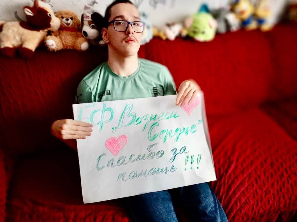 Совсем скоро мы подготовим фото и видео материалы с его реабилитации, а пока спешим поделиться с вами плакатом-благодарностью от молодого человека и его мамы.