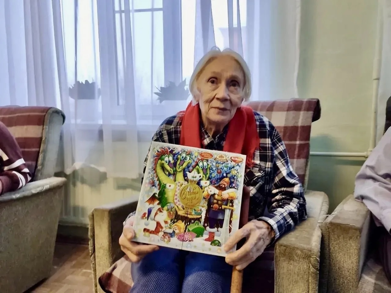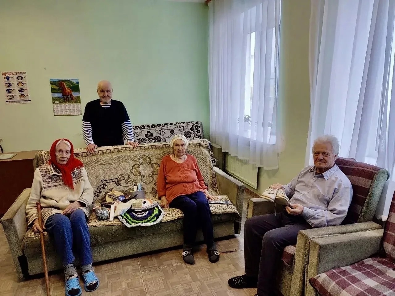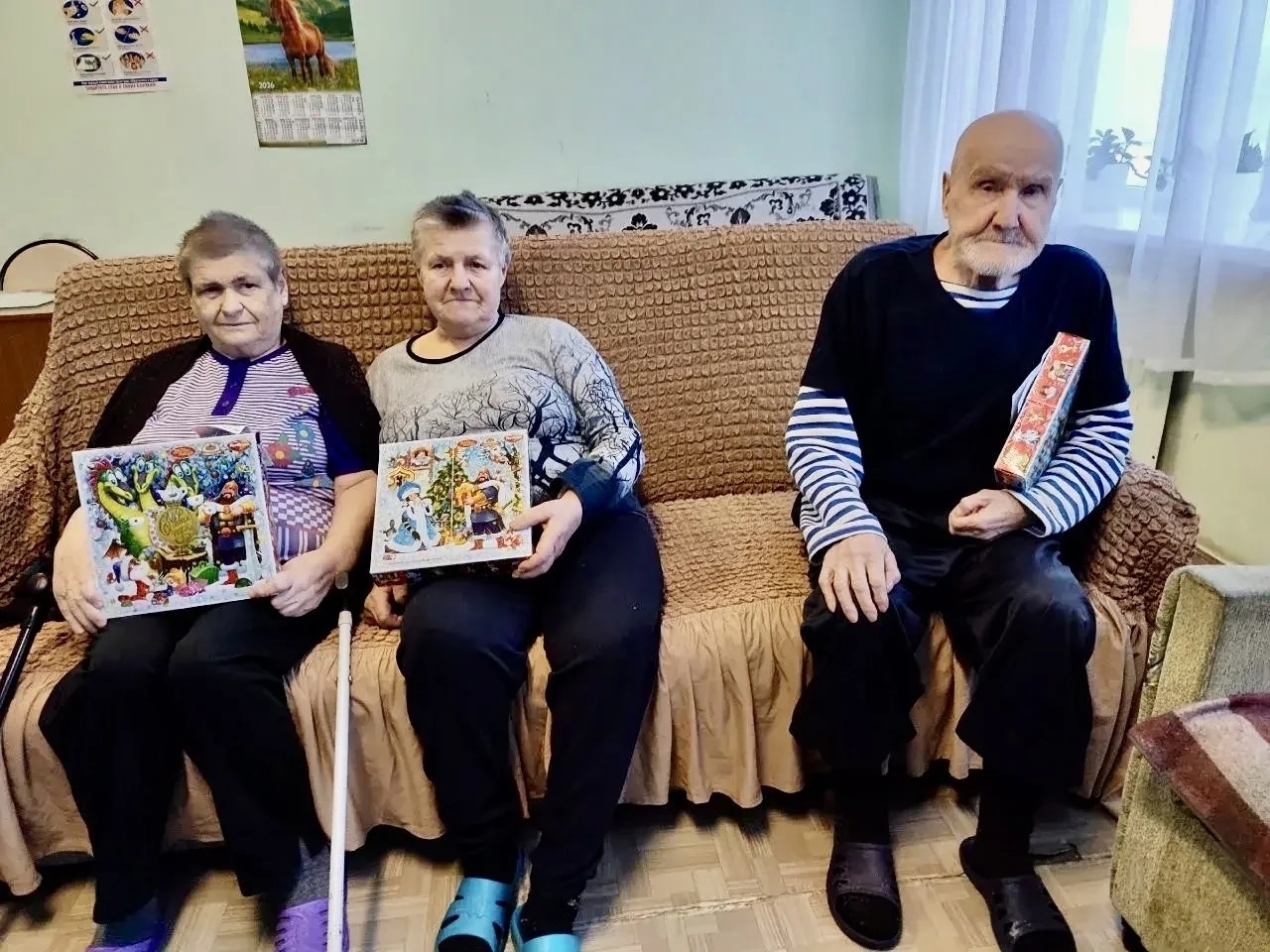 «В преддверии Нового года и Рождества в отделение милосердия от нашего давнего друга Елены пришла большая посылка с подарками для бабушек и дедушек. Все с огромным интересом рассматривали красивые коврики, связанные лично Еленой! А также другие милые предновогодние сюрпризы. Дедушке Юрию Васильевичу в самый раз пришлись прекрасные весенние ботинки. Спасибо Елене за внимание, доброту и заботу!