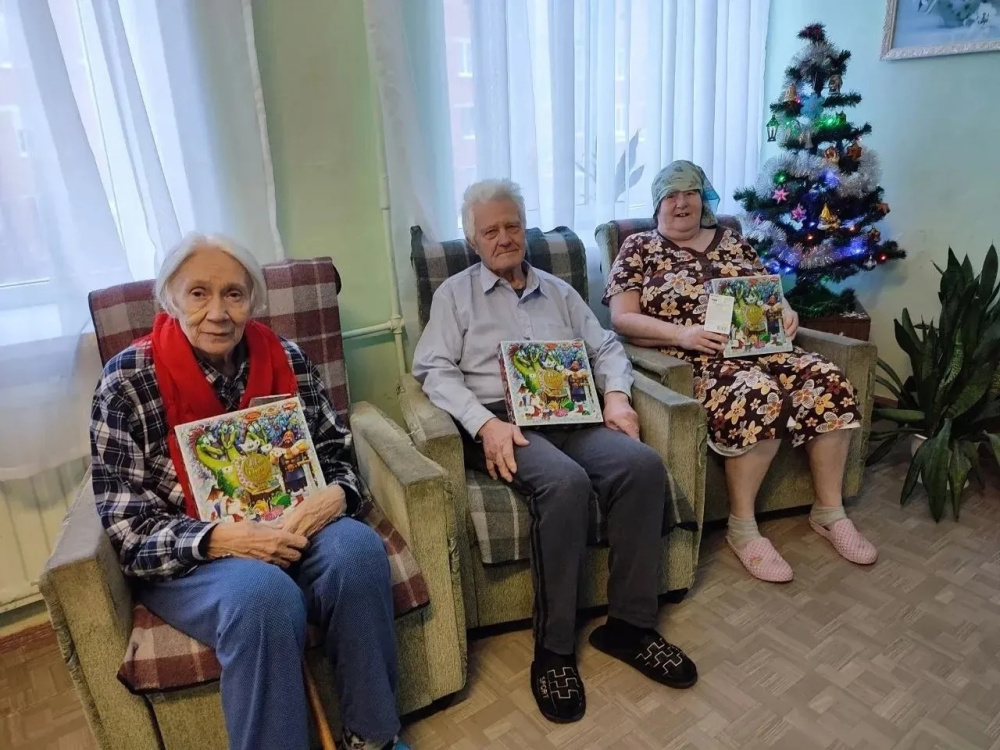 Все бабушки и дедушки отделения получили индивидуальные, яркие новогодние подарки. Они радовались этому как дети и нисколько не сомневались, что подарки им прислал настоящий Дед Мороз! Но на этом чудеса не закончились!