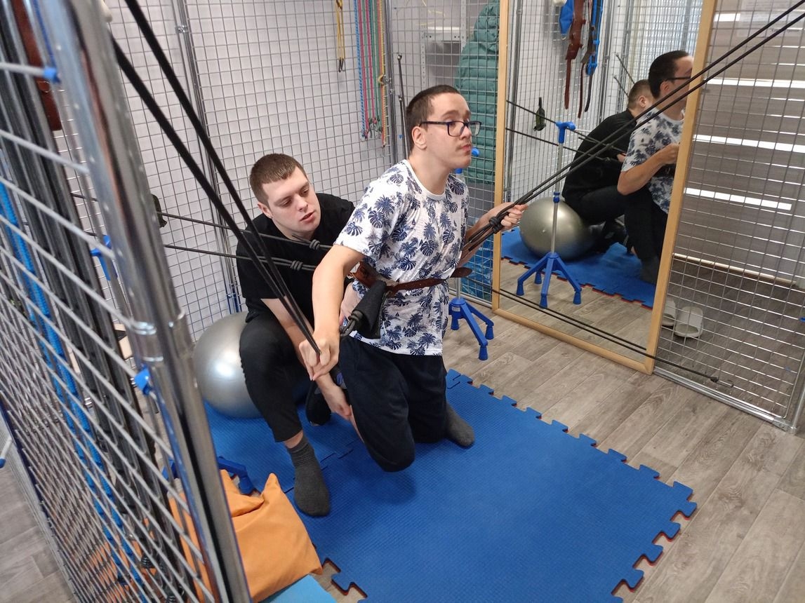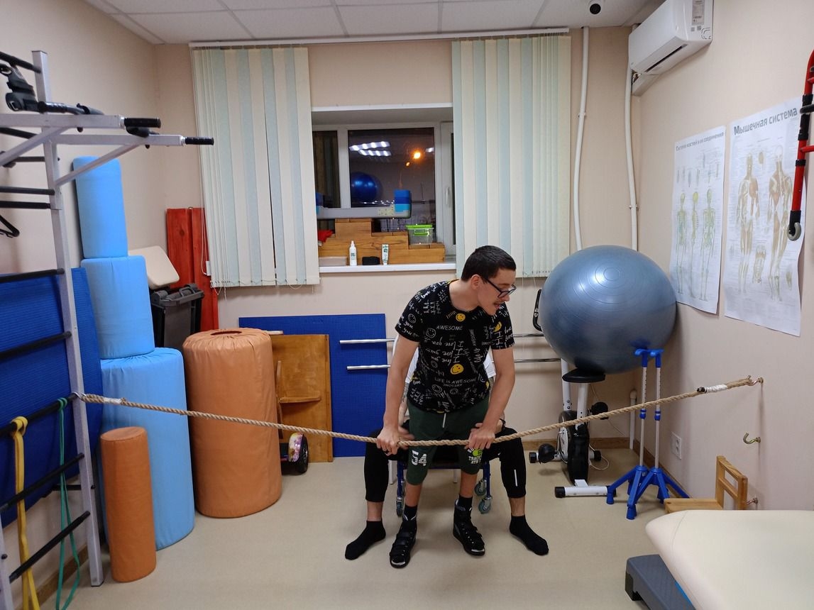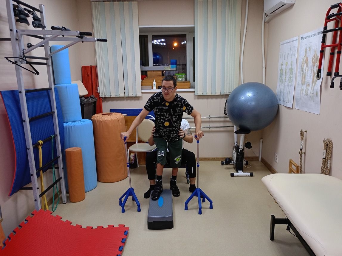 На тренажёре «Баланс Мастер» мы дополнительно отрабатывали перенос тела и прорабатывали мышцы спины. В результате Данила стал лучше контролировать перенос тела на левую ногу, которая больше пострадала из-за болезни.