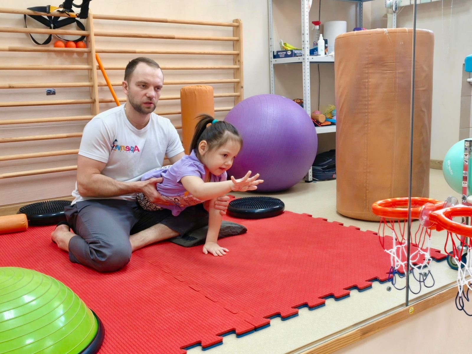 История подопечной: Маше 6 лет, у неё ДЦП, спастический тетрапарез. Она не ходит, но учится сидеть, вставать, держать равновесие и искренне радуется каждому своему успеху. Врачи отмечают хорошую динамику и уверены: при регулярной реабилитации у Маши есть шанс научиться ходить.